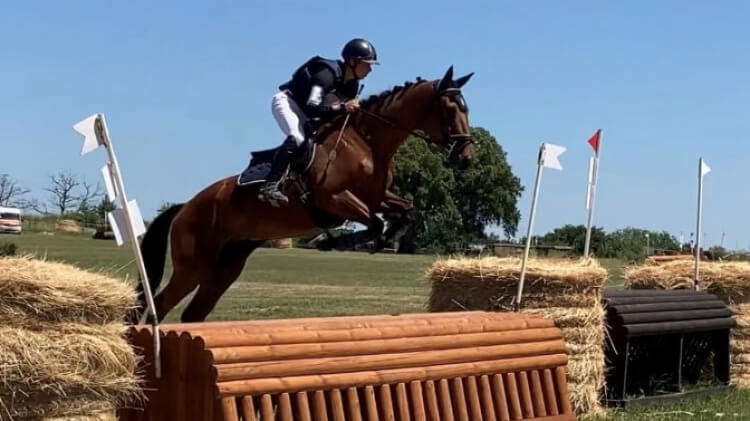 GLADIATEUR D'AUVILLE complète le podium associé à Marion Cerf. Totalisant 33,90 points à l'issue du dressage, le fils de Maloubet de Pleville et Quissora du Talus par Diamant de Semilly prend 3,6 points de temps dépassé sur le cross. Il termine donc le concours avec 37,50 points. Né chez Annie et Thierry Servoisier dans la Manche, le hongre Selle Français est désormais la propriété de la famille Miralles.
