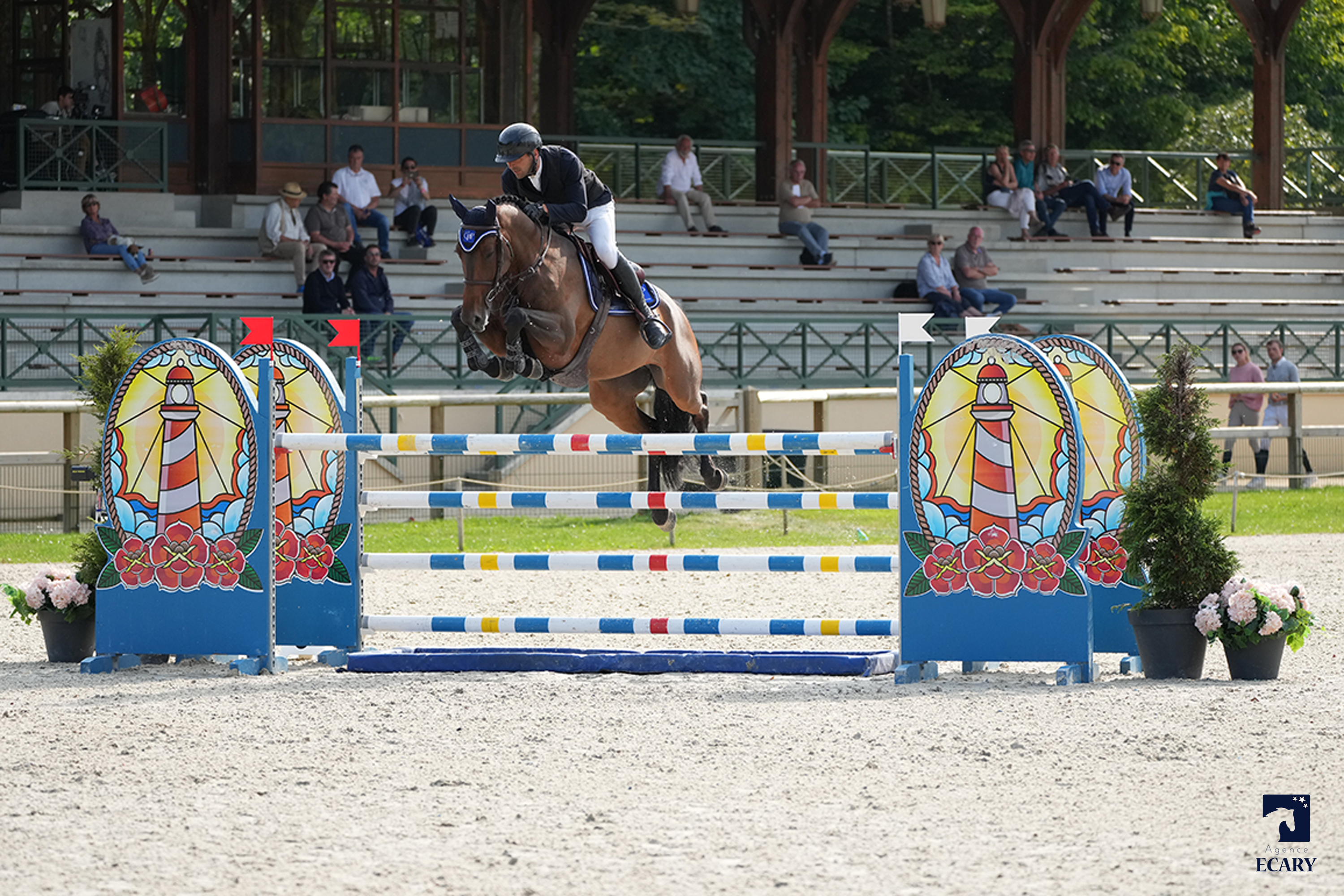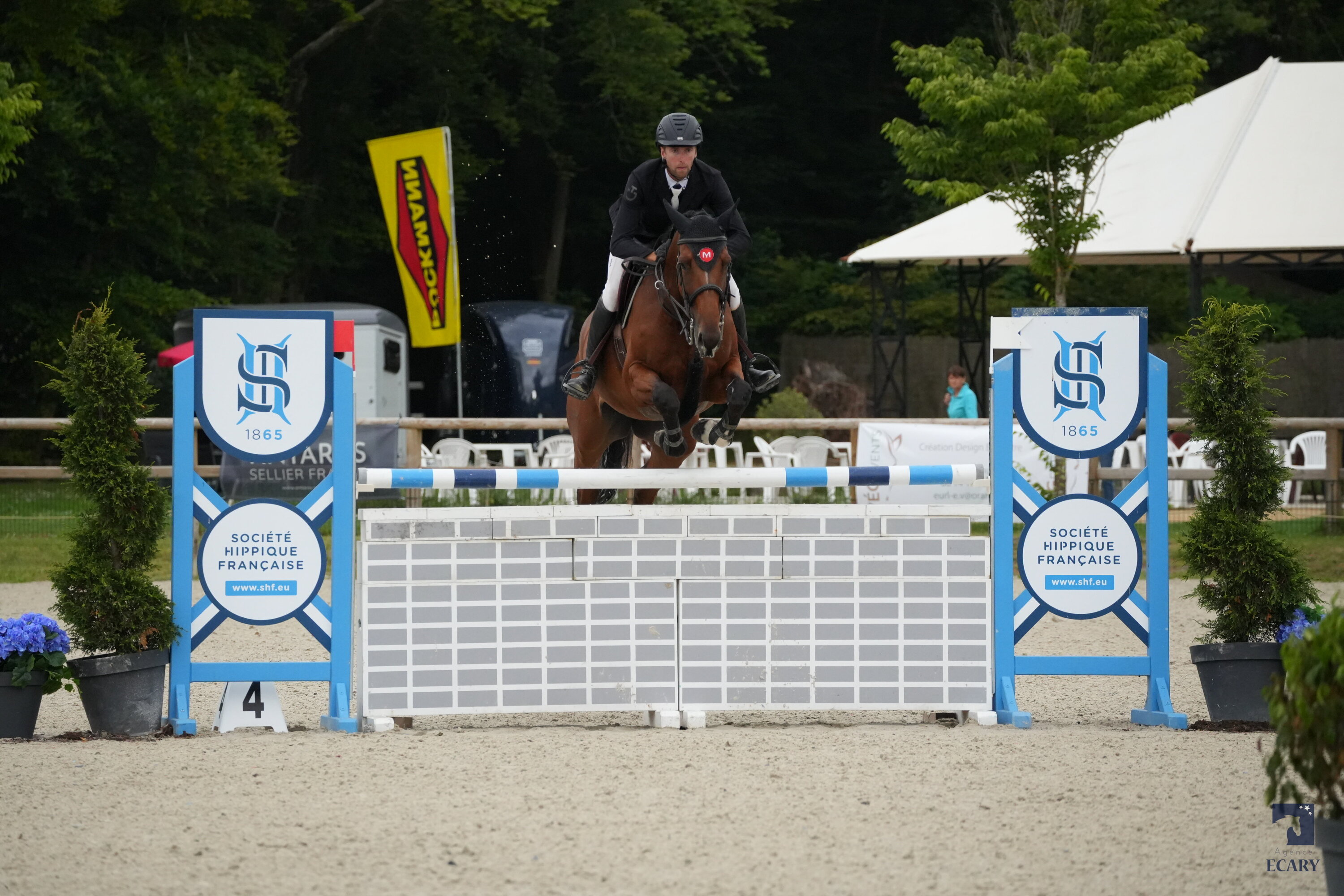 IBERIQUE DES RONDETS, SF (Balou du Rouet et Ebony des Rondets par Air Jordan) prend la troisième place avec Alexis GOURDIN et un chrono de 71,17s. Née chez Jean-paul PRITZY, la jeune jument appartient aujourd’hui à Mathieu ROLL et Judicael VIEILLE. Cette saison elle réalise 12 parcours sans pénalité sur 14 effectués. En 2023, la jolie baie se classait 6ème du CIR des 5 ans à Rosières-aux-Salines.