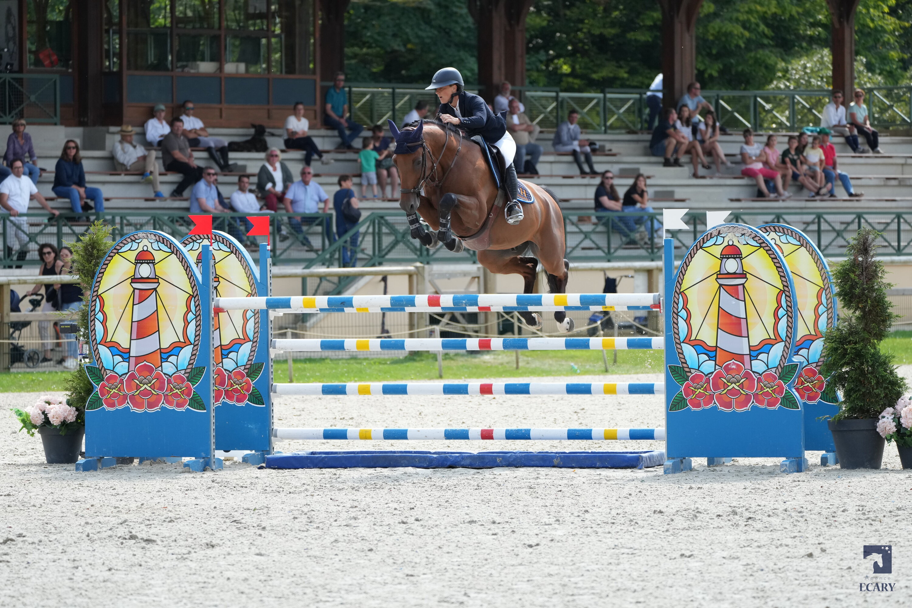 JEIDA VEHEM, SF décroche la 3e place ex aequo, guidée par Alix RAGOT. Egalement 74e au top 100, c’est son double sans faute et sa note de modèle de 15.6 qui lui offrent sa place. Issue du croisement entre Dollar du Rouet et Garisma van Orshof par Nonstop, la jeune jument est née chez Gregory GIBAULT et la S.a.r.l. ECURIES SOULOUMIAC et appartient à la S.a.s. ERA JUMP. Elle réalise une saison additionnant 12 sans faute sur 14 parcours effectués.