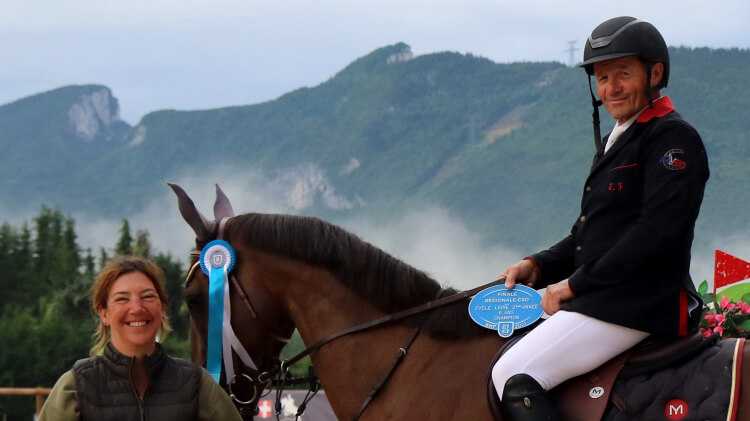 Le couple formé de FUEGO DES EFFEUILLERS et Sylvain SEYTRE, éleveur, propriétaire et cavalier du cheval, prennent la troisième position de l'épreuve. Ce mâle alezan Selle Français est né du mariage entre Maloubet de Pleville et Risis d'Elgo par Diamant de Semilly.