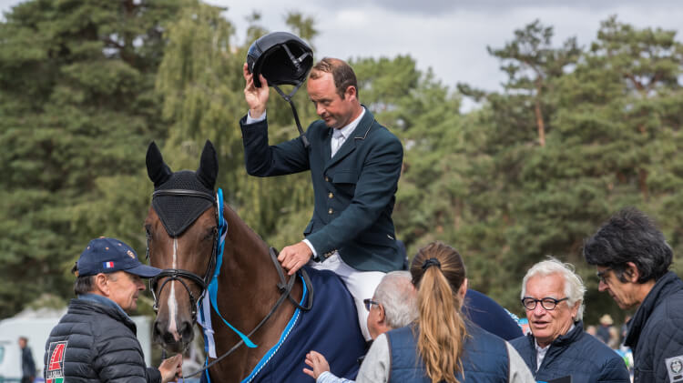 Enfin, le podium a été complété par ELLEA DE MONT, auteur de trois parcours parfaits sous la selle de Jean-François Filatriau. Élevée et appartenant à Anne-Marie et Emmanuel Paysant-Le Roux, la fille de Canturo et d’une mère Selle Français Venise des Veys, par Panama Tame, avait réalisé cette année quatorze scores vierges sur dix-sept parcours courus lui conférant 2 points de régularité. La baie réalise ainsi une belle performance pour sa première participation à la Finale nationale : « À quatre ans mon coach a monté Ellea de Mont afin de la mettre tranquillement dans le bain sans l’agresser et en prenant son temps », évoque le naisseur et propriétaire. « Elle a fait des petits quatre points à droite et à gauche avant d’être double sans-faute lors du CIR, dernier concours de sa saison. Ensuite, cette année je l’ai confiée à Jean-François Filatriau pour les 5 ans. En piste, elle est très froide et, selon son cavalier, elle est très douée et pourrait tout sauter. Elle ne fait jamais trop d’efforts et cela est parfois dur pour les nerfs lorsqu’on regarde un parcours car il y a quelques notes de musique, mais elle parvient souvent à sortir sans pénalité comme ici où elle est triple sans-faute alors qu’elle a dû effleurer toutes les barres de l’ultime parcours ! Elle n’est pas vraiment démonstrative en concours, mais cela doit être dû à la tension car à la maison elle saute beaucoup mieux et est davantage déliée ».