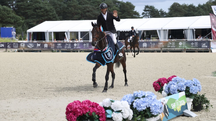 Julien Covini est un habitué de la Grande Semaine de Fontainebleau, et son affixe s’installe progressivement dans le paysage sportif hexagonal. Avec JAWELLA DE LEVAUX, il signe l’une de ses plus belles réussites. Débutée à 4 ans par Eric Lelièvre, la jument bai foncé avait déjà pris part aux finales SHF 2023 après un double sans faute au CIR de Rosières. Cette saison, la fille de Conte Bellini a enchaîné 12 parcours parfaits sur 13, avant de s’adjuger le CIR de Cluny et se présenter sur le Grand Parquet à la 9ème place du Top 100 SHF. Sa génétique très européenne est truffée de gagnants...et pour cause, sa grand-mère n’est autre que Wella I (Lord, holst), la mère d’un certain Quaprice Boimargot (Quidam de Revel, sf), grand performeur international avec Patrice Delaveau. Outre l’élevage de Rodolphe Bonnet et Laetitia Viollet, Wella I a offert à plusieurs éleveurs une descendance remarquée, notamment les affixes « de Hus », « de Kreisker » et donc « d’Enfer ». Jawella est le premier produit de Tawella Denfer, la fille de Wella I, à fouler le sable bellifontain, emmenée par un pilote chevronné. « J’ai un peu l’habitude des championnats » dit Eric Lelièvre, « j’essaie de ne pas entrer dans le système de la pression et de rester détendu. La jument est assez fiable, elle n’a loupé qu’un tour, j’étais assez confiant. Je craignais un peu le triple car il y avait beaucoup de fautes, mais elle l’a très bien sauté. J’ai fini le parcours plus décontracté. » Déçu lors de la finale 2023 où la belle avait dérobé sur la rivière, son cavalier a pu savourer le fruit de son patient travail. « Je travaille avec son propriétaire Philippe Georgé depuis des années. Il l’a acheté à mon ami Julien Covini, dont nous avions eu déjà Mirage de Levaux (CSI5* avec Simone Coata, ndlr). Elle a déjà trois frères et sœurs qui sautent 1,50m, c’est une jument prometteuse, maligne et adroite. »