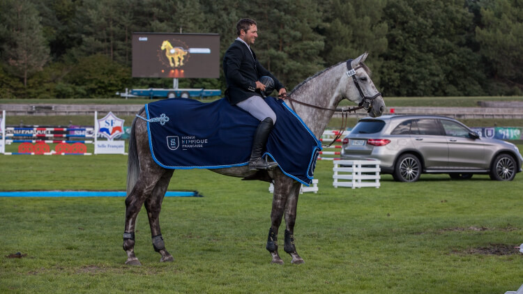 Grâce à un chronomètre de 79’79 l’élégante grise SASSICAIA DEL CHIRONE et Romain Duperret se sont imposés. Née à l’élevage Il Chirone di Bruna de Paolis, en Italie, et appartenant désormais à Anne Pocquet, femme du cavalier, la fille de Stakkato et Donna Dinara, par Don Juan, a ainsi ponctué une saison performante, deuxième saison seulement de sa carrière. « Cette saison Sassicaia a plutôt évolué avec ma femme Anne Pocquet », explique Romain Duperret. « Ensemble elles sont notamment double sans-faute lors du CIR de Rosières-aux-Salines à la fin du mois de juillet. Je l’ai ensuite montée à quelques reprises chez nous avant de l’emmener en concours sur un terrain en herbe, aux Maillys, pour voir comment elle réagissait et se comportait. Elle a été exemplaire dans les épreuves Amateur 1 et Amateur Élite et nous sommes donc venus à Fontainebleau en confiance car sûrs des moyens de la jument et de son comportement ».