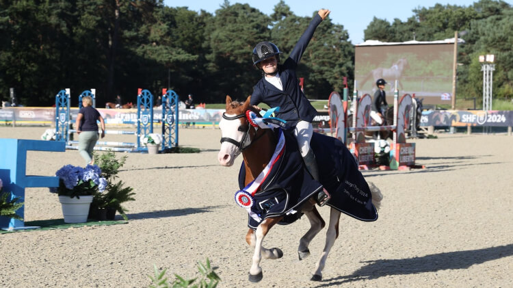 Vingt-trois finalistes se sont affrontés chez les 4 ans C et cinq d’entre eux ont bouclé un double sans-faute. Bon sang ne saurait mentir, une fois encore, avec l’étalon Français de Selle KING KONG STAR D’ETE, champion 2024 de cette catégorie et classé Elite : son père Very Star Kerveyer (Movie Star du Tilia, Pfs x Kantje’s Ronaldo SL, Nf) est en effet un des étalons les plus populaires de l’hexagone et acquiert la réputation de faire de très honnêtes poneys de CSO plutôt faciles et jolis ; quant à sa mère, la Welsh B Hipipip de la Motte (par le très bon Elvey Jarnac) est, entre autres, celle de l’étalon Pfs qui s’est lui aussi fait un nom dans l’élevage du poney de sport Ulk d’Eté (Heatbreaker, Kpwn) pour le compte de Pony Planet. Sous la selle de Lila Dulongcourty, il fait honneur à ses naisseurs Laurence et Vincent Roger avec une NEP de 17.575 et un modèle noté à 16.10.
