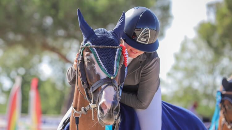 Lou Morali confie : « Goldenstar a été incroyable, il a survolé les parcours de la finale. Samedi, il fait le plus beau tour de sa carrière : rien ne pouvait lui arriver ! Il est très gentil au quotidien, facile à vivre. Je ne peux pas dire qu’on l’aime plus qu’un autre… mais peut être que si finalement car il est le fruit d’un lien d’amitié avec sa propriétaire Caroline Grou décédée il y a quelques mois. Il se donne à 200% pour moi et je l’aime de tout mon cœur ». La talentueuse cavalière, très émue, a commencé à le monter en début d’année de 5 ans. « Caroline l’a acheté chez Mathieu Laisney lorsqu’il avait 3 ans. C’était compliqué au début car il ne savait pas trop galoper. Elle m’a proposé de l’essayer et je l’ai adoré. Souhaitant le garder près d’elle pour faire les 4 ans en Dressage, Cyril Rey l’a monté un petit peu en CSO, puis elle m’a proposé de le sortir en concours l’année suivante. Nous l’avons acheté pour moitié après les 5 ans (classé 6e et Elite, ndlr) et lorsque Caroline est tombée malade, il a intégré mon écurie fin décembre ou début janvier », précise-t-elle. Bien que doté d’un geste de devant très perfectible, ce poney possède de gros moyens et devrait s’illustrer à n’en pas douter sur le circuit des 7 ans avec sa fidèle amazone avant d’évoluer avec un jeune pilote.