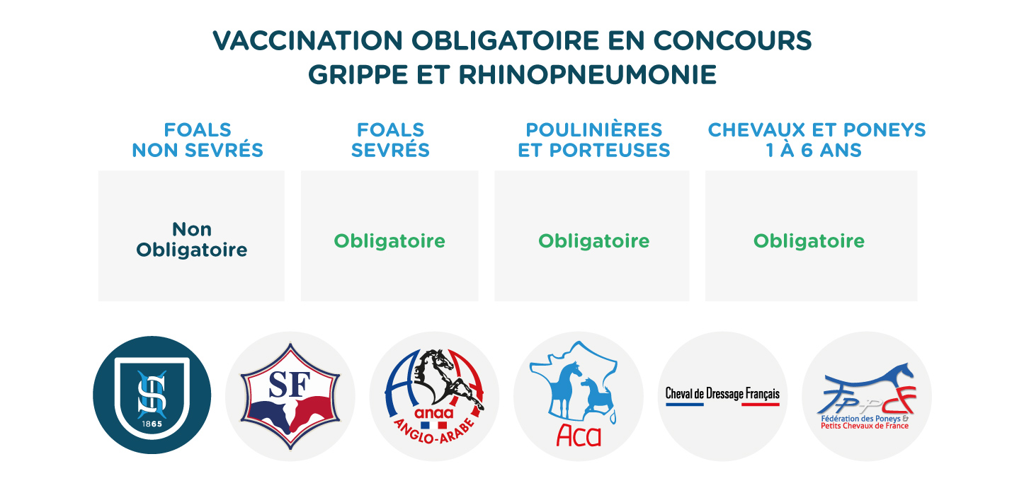 - Les foals présentés sous la mère ne sont pas soumis au protocole de vaccination obligatoire ;