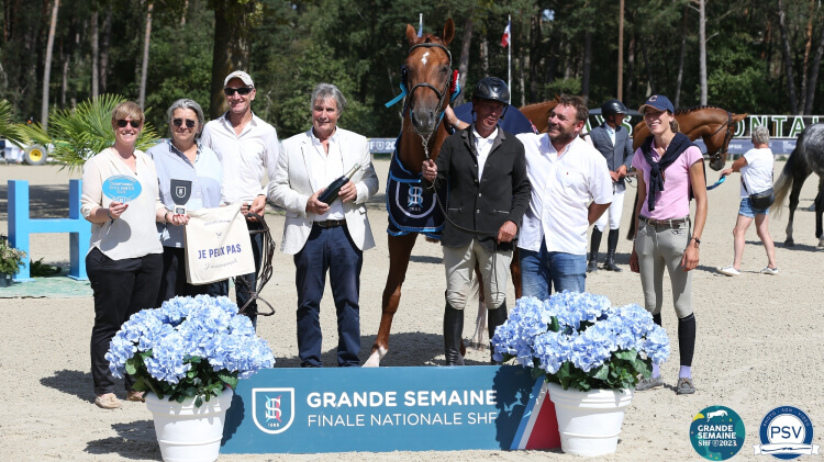 Lors de la finale des six ans, grâce à une note de 17.25, le flot du vainqueur, assorti d’une première prime et de l’une des trois mentions Elite décernées sur cette édition 2023, reviennent à l’entier alezan O’NEIL Z, fils de Old Chap Tame SF et Zaprice (Holst) par Corrado I (Holst), propriété de son cavalier Michael Jannot et de son ami Sébastien Grillon, très ému de la victoire de leur protégé. « Nous vivons une vraie histoire d’amour avec O’Neil. Nous l’avons rencontré chez un marchand français à l’âge de trois ans, et nous avons craqué sur son origine, son modèle, et sa qualité de saut. Il était sélectionné pour les ventes Nash, et rétrospectivement, je dirais que presque par bonheur, il a eu un problème au pied qui l’a empêché d’être mis en vente. Nous lui avons laissé toutes les chances pour récupérer à 100%, et avons du patienter pour sa mise en compétition puisqu’il n’a débuté que cette année. Il nous émerveille. Michael était le meilleur pilote possible pour lui. La boucle est bouclée, nous sommes aux anges. » Le splendide alezan s’apprête à revenir en région centre pour suivre son cavalier, qui après deux ans d’une aventure qui ne s’est pas avérée aussi belle que prévue, reprendra son ancien poste d’instructeur-formateur au lycée agricole de Saint Cyran du Jambot (36).