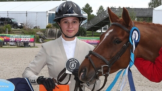 GIRLY CHA D'ORE et MELINA SAVARY gagnent le premier Championnat de Style Hunter Poneys dans la génération des 4 ans avec une moyenne de 15,5 et donc une mention Excellent à la clé. Fille de MEEPING CHA DE FLORYS*SL et de SI DOREE DU PONTHOUAR par QUARTERON AGILE, la jument Poney Français de Selle appartient Aurélie Chery, sa naisseuse basée dans le Finistère.