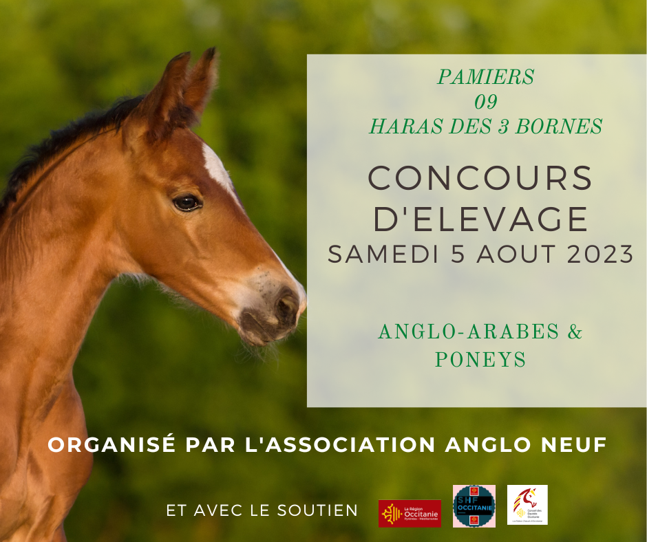 Concours organisé par l'association Anglo-Arabe de l'Ariège Anglo Neuf, ouvert aux chevaux anglo-arabes et poneys toutes races